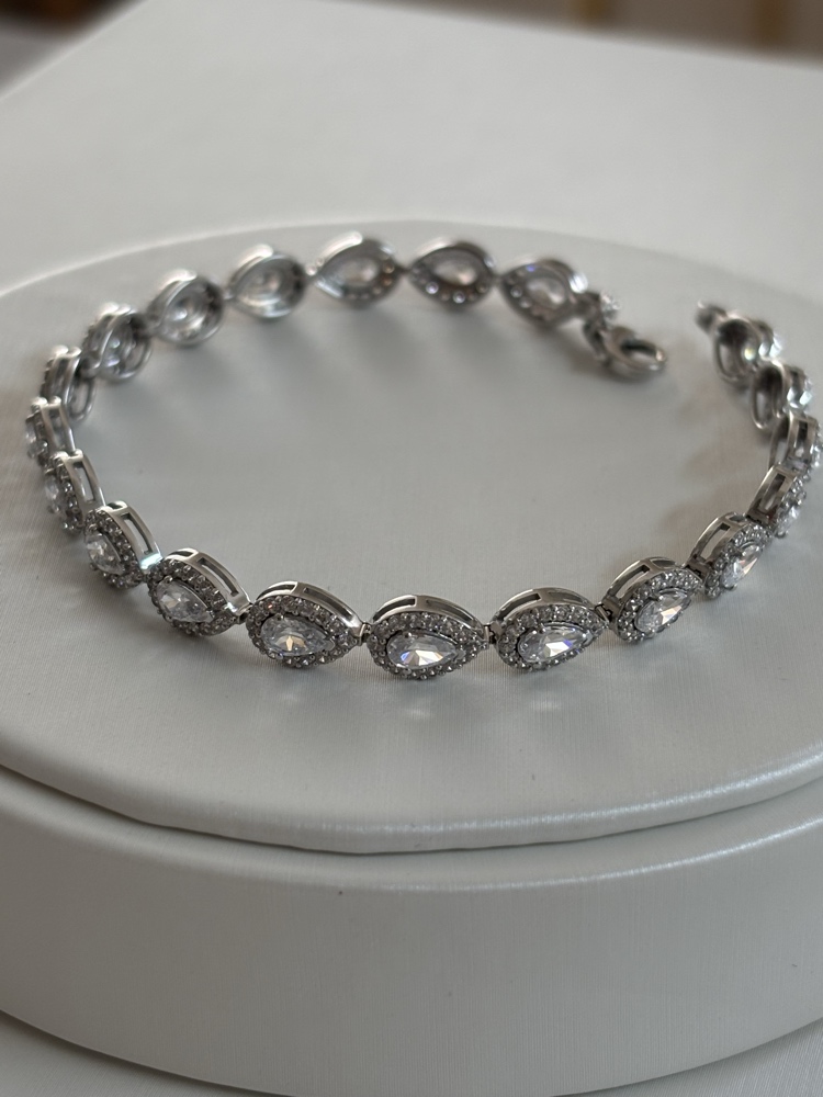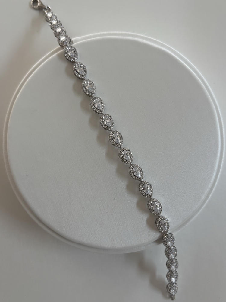 צמיד זהב לבן 14K משובץ אבנים בעיצוב טיפות יוקרתי | דגם "Lara Royal Pear"