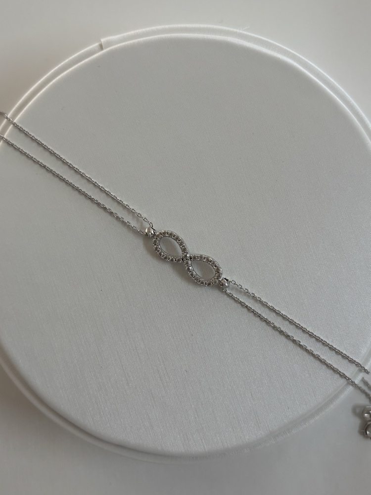 צמיד זהב לבן 14K עדין עם סמל אינפיניטי משובץ ואבנים נוצצות | דגם "Lara Infinity Shine"
