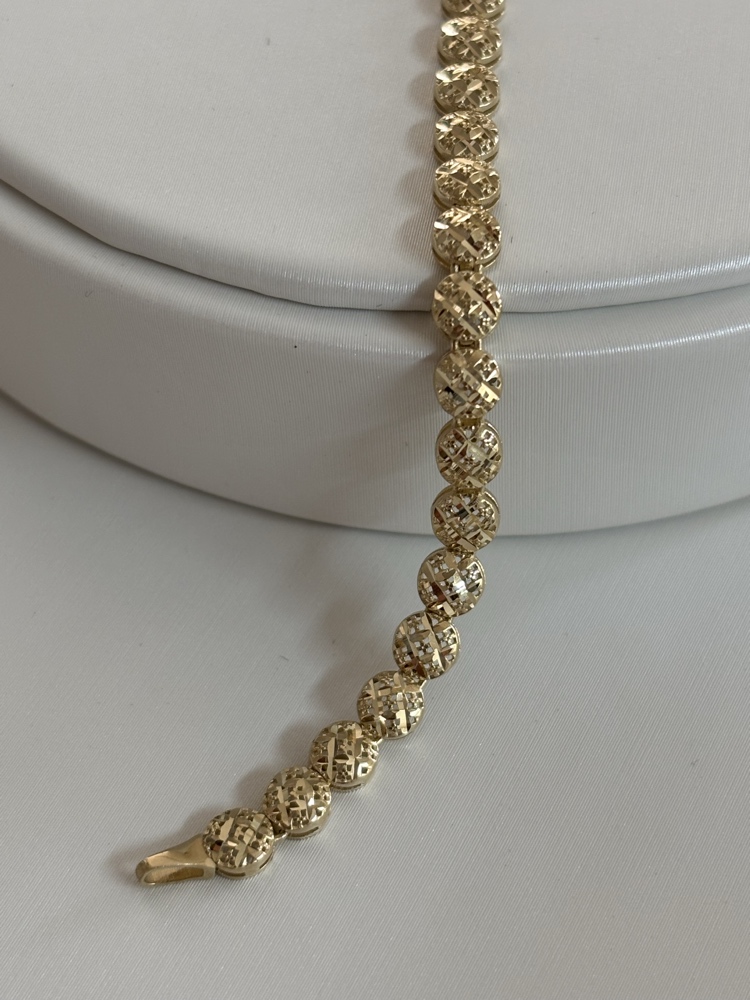צמיד זהב צהוב 14K בעיצוב חוליות עגולות עם חיתוכי לייזר מנצנצים | דגם "Lara Shimmering Discs"
