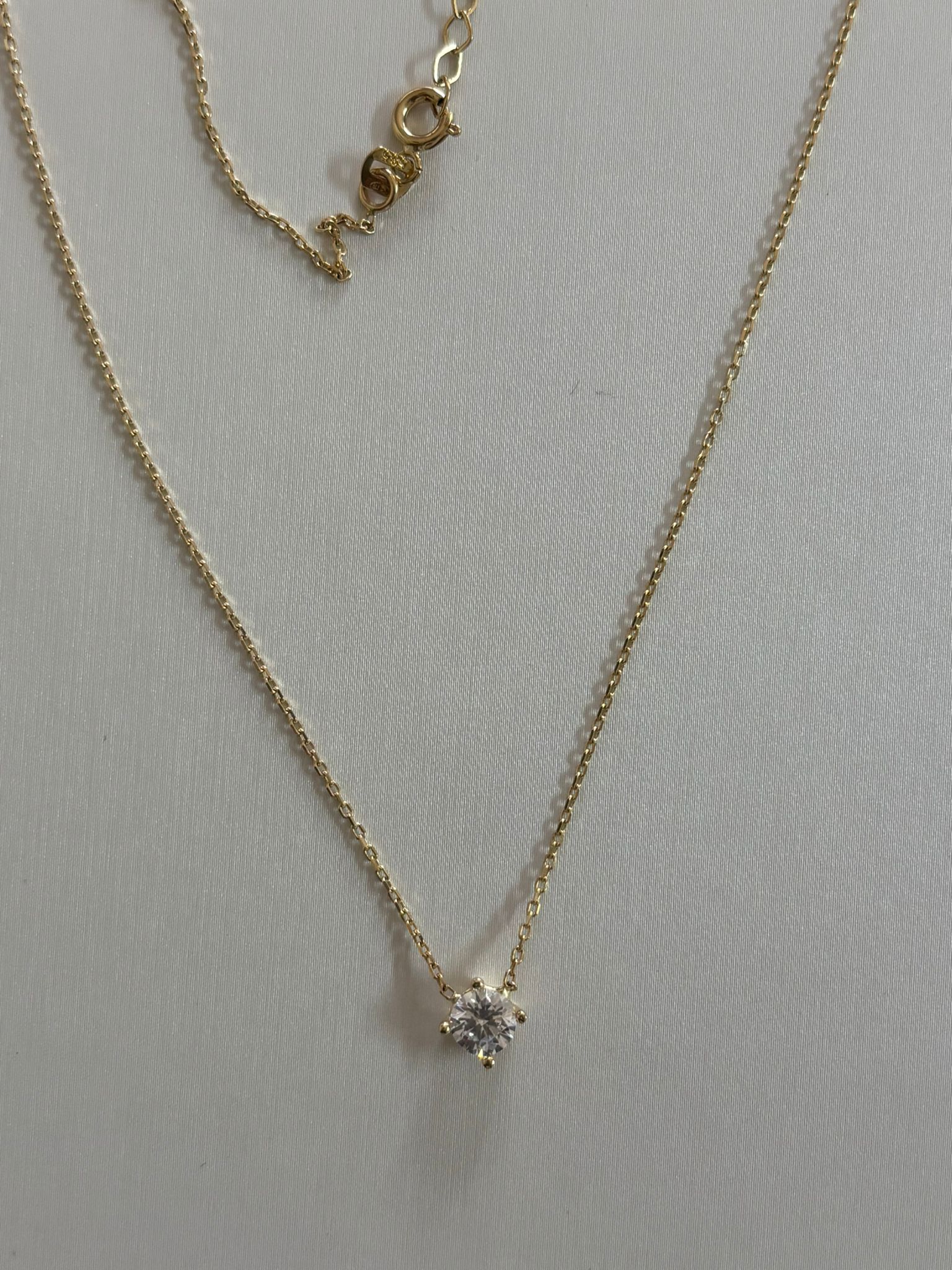 שרשרת סוליטר זהב צהוב 14K עם אבן עגולה ומנצנצת | דגם "Lara Timeless Solitaire"